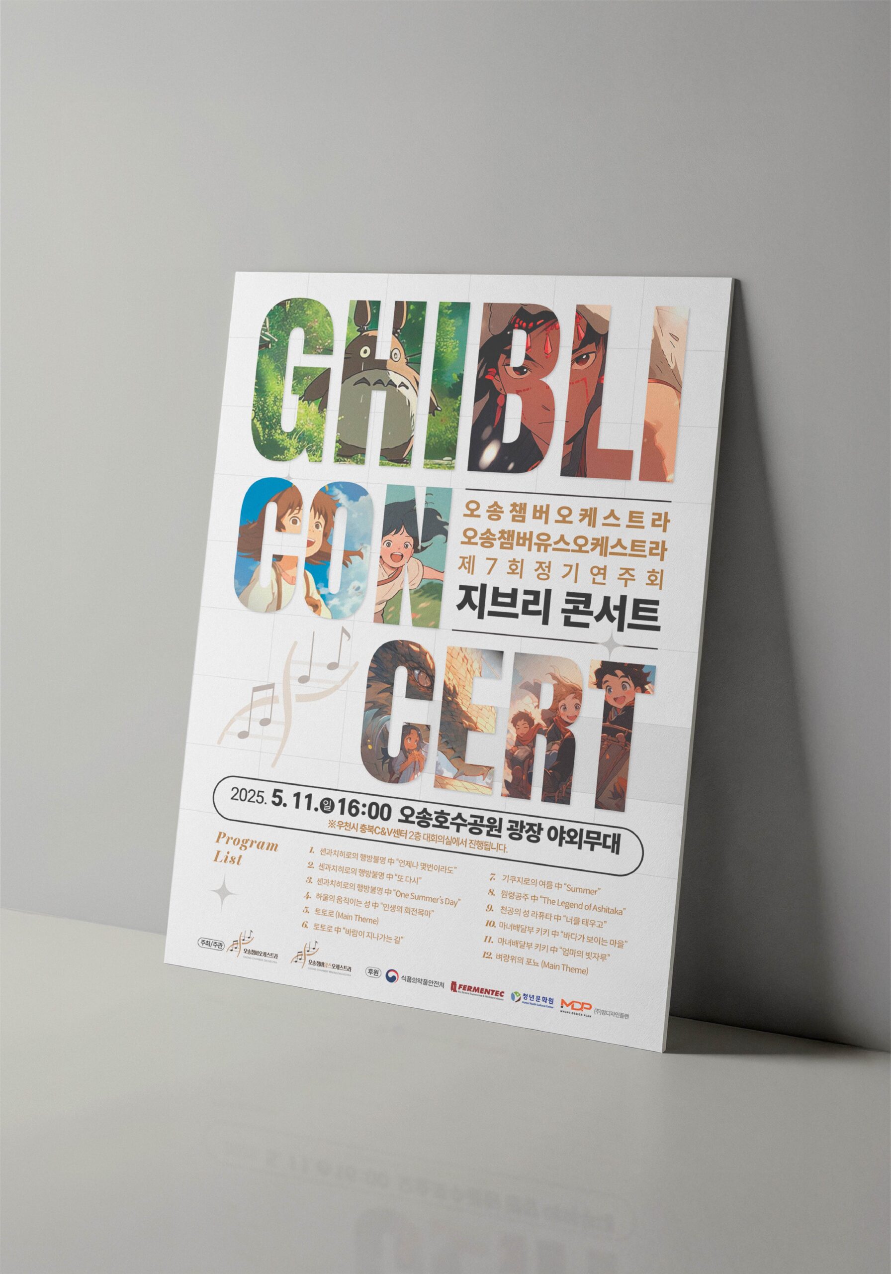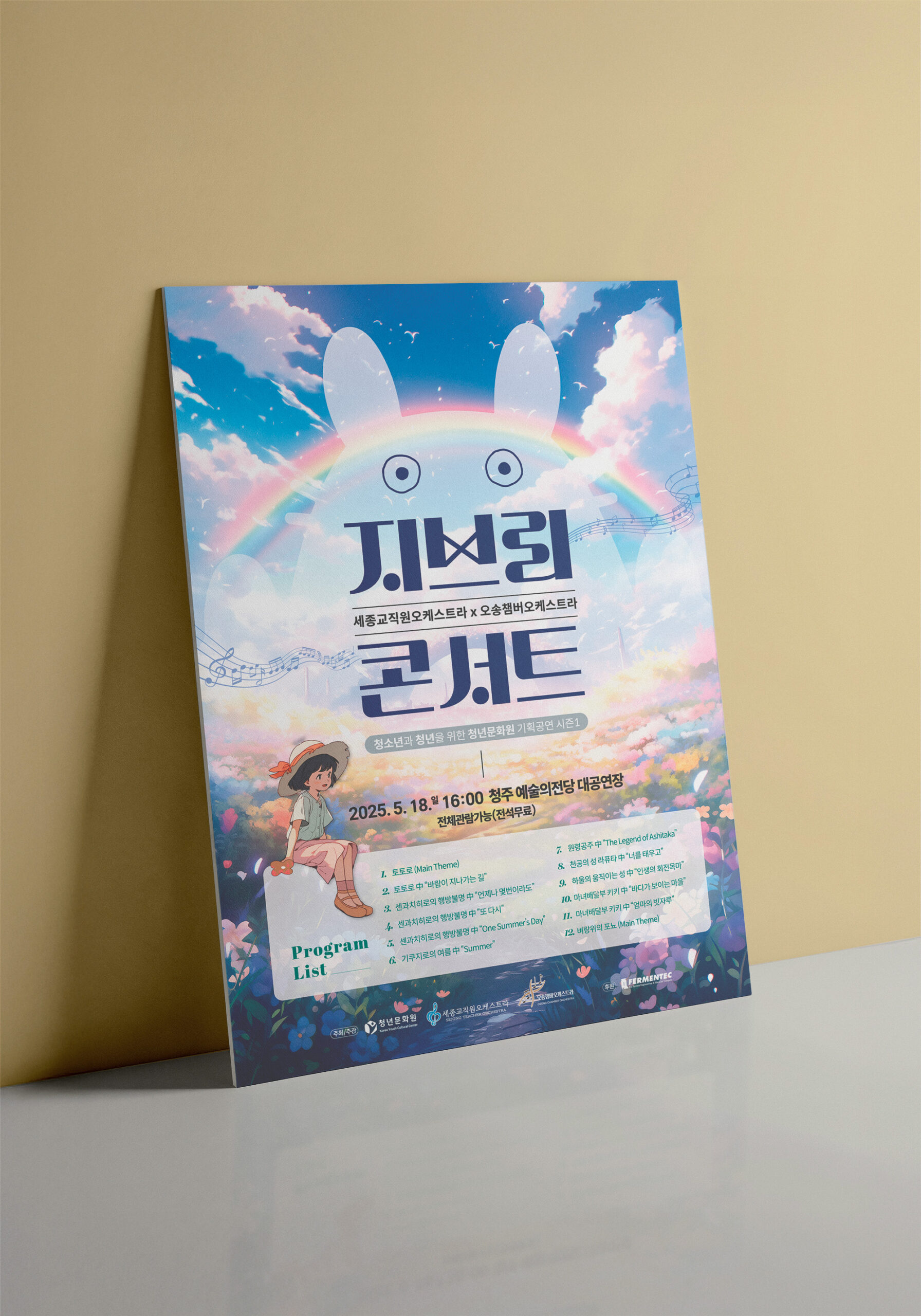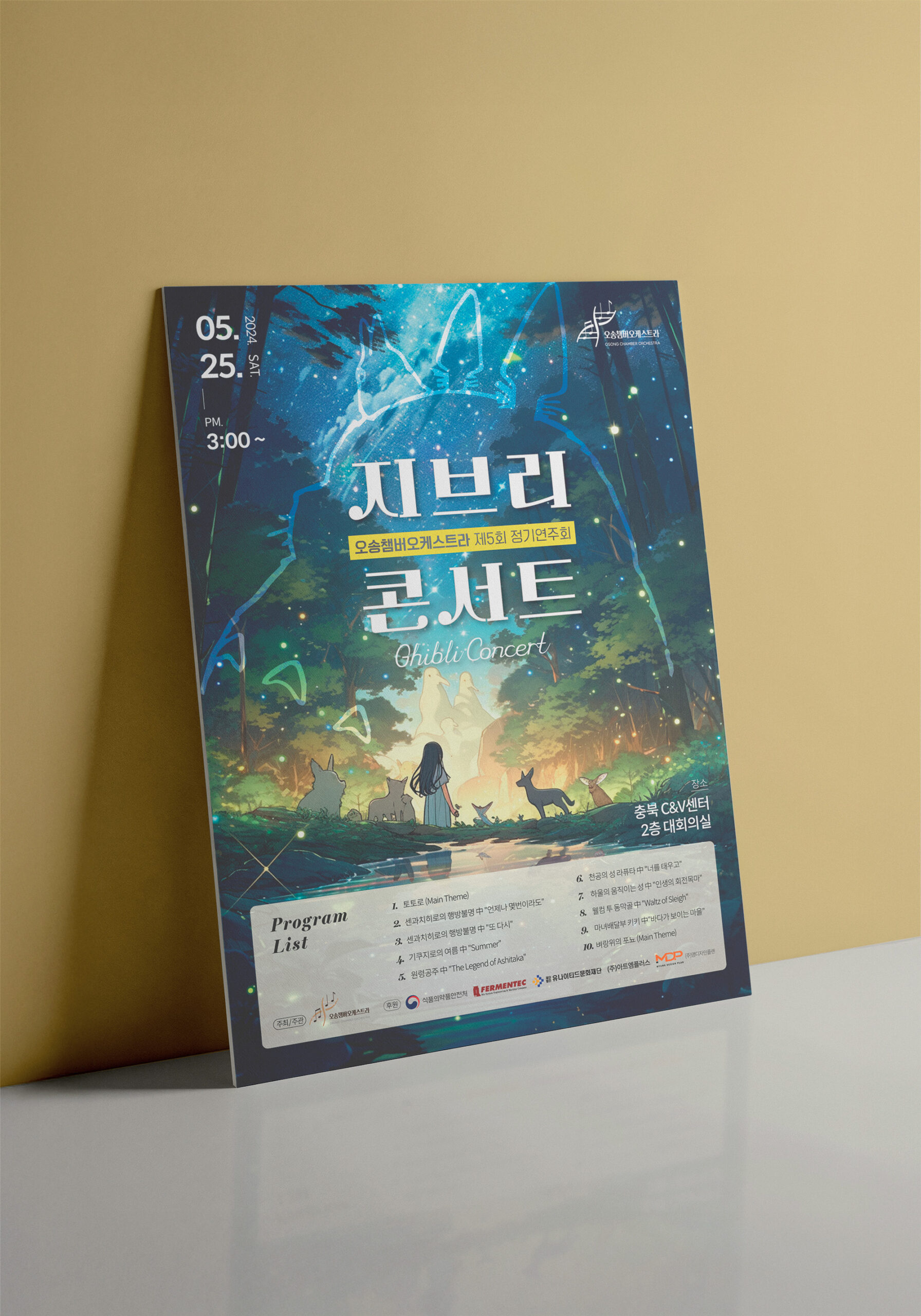 오송(챔버오케스트라), 세종(교직원오케스트라)지역의 오케스트라와 협업하여 <지브리 콘서트>의 홍보물을 3회 연속 디자인, 제작하게 되었습니다. 같은 주제를 다르게 풀어내는 디자인을 통해 예비 관객에게 호기심과 기대감을 높이려 노력하였습니다.
