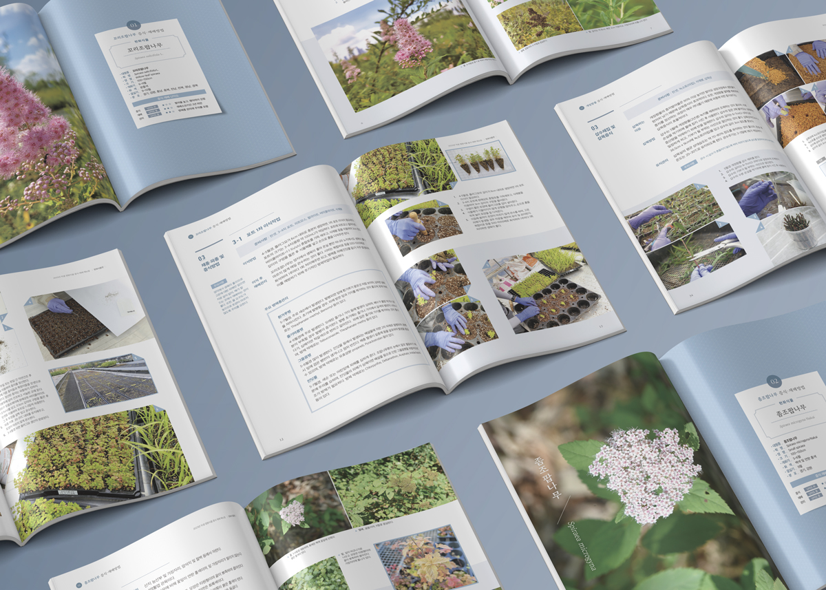 국내 자생식물을 정원소재로 활용하기 위해 증식, 재배하는 안내하는 매뉴얼을 제작하였습니다. 식물종당 증식, 재배하기 위한 다양한 내용을 가독성 있게, 시선의 흐름대로 편집하여 독자의 이해도를 높이기 위해 고민했습니다. 북케이스도 함께 제작하여 세권을 하나의 세트로 구성하였습니다.